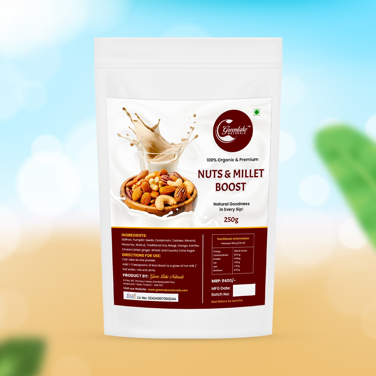 Nuts & Millet Boost is a wholesome, energizing drink made from nuts and millets, providing natural energy, supporting metabolism, and enhancing overall health.